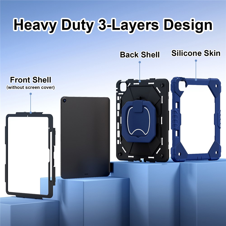 Den förstärkta ramen absorberar effektivt stötar, medan den inbyggda 360° roterande stödet gör det enkelt att växla mellan liggande och stående visning – perfekt för film, arbete eller videosamtal. Stödet fungerar även som bärrem, vilket gör det ännu mer mångsidigt.