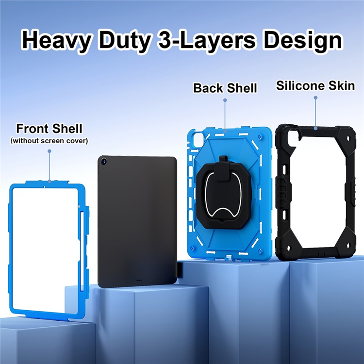 Den förstärkta ramen absorberar effektivt stötar, medan den inbyggda 360° roterande stödet gör det enkelt att växla mellan liggande och stående visning – perfekt för film, arbete eller videosamtal. Stödet fungerar även som bärrem, vilket gör det ännu mer mångsidigt.