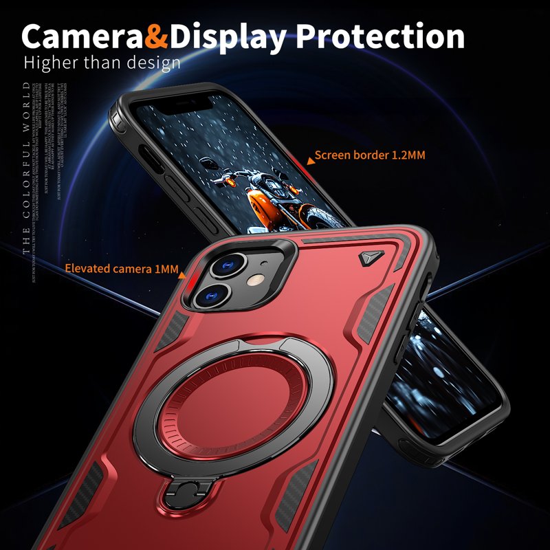 Vårt telefonfodral erbjuder militärklassat skydd för din enhet. Tillverkat av hållbara PC- och TPU-material, ger det stöt- och fallskydd. Med en inbyggd kickstand och MagSafe-kompatibilitet är detta fodral både funktionellt och praktiskt. Skydda din telefon utan att kompromissa med stil eller användbarhet.