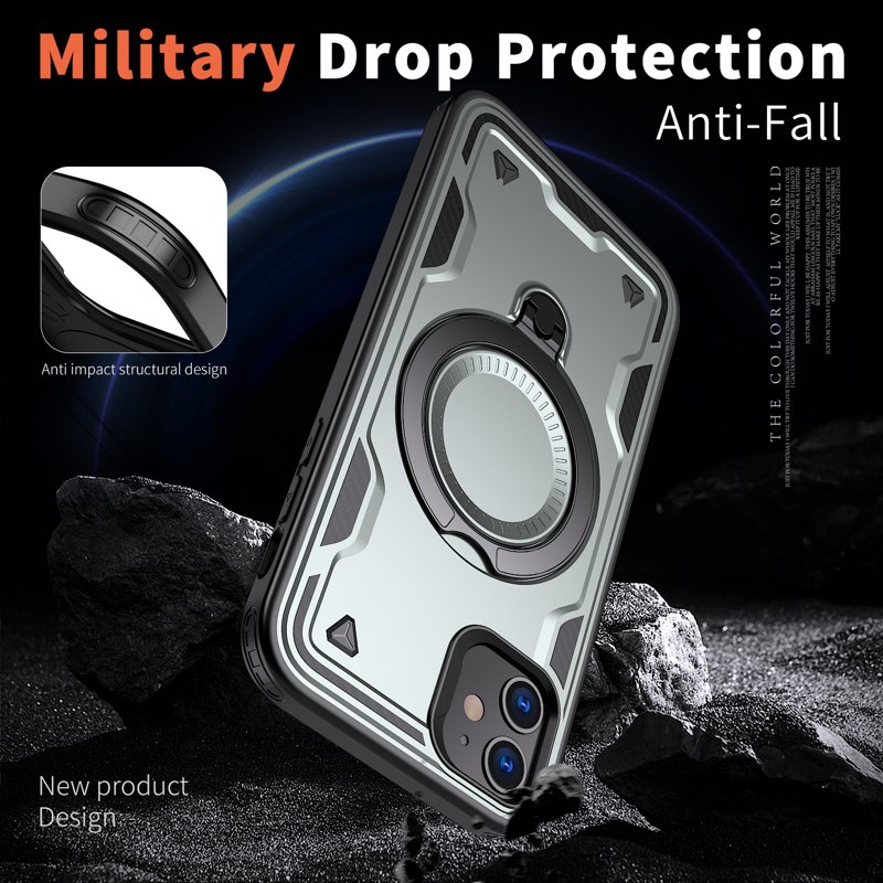 Vårt fodral erbjuder militärklassad skydd för din smartphone. Tillverkat av en hållbar kombination av PC och TPU-material, ger det stöt- och fallskydd. Med en inbyggd kickstand och MagSafe-kompatibilitet är detta fodral både praktiskt och funktionellt. Skydda din enhet i tuffa förhållanden utan att kompromissa med stil eller användarvänlighet.