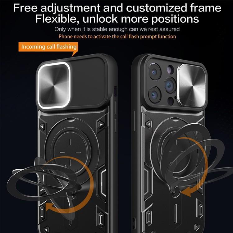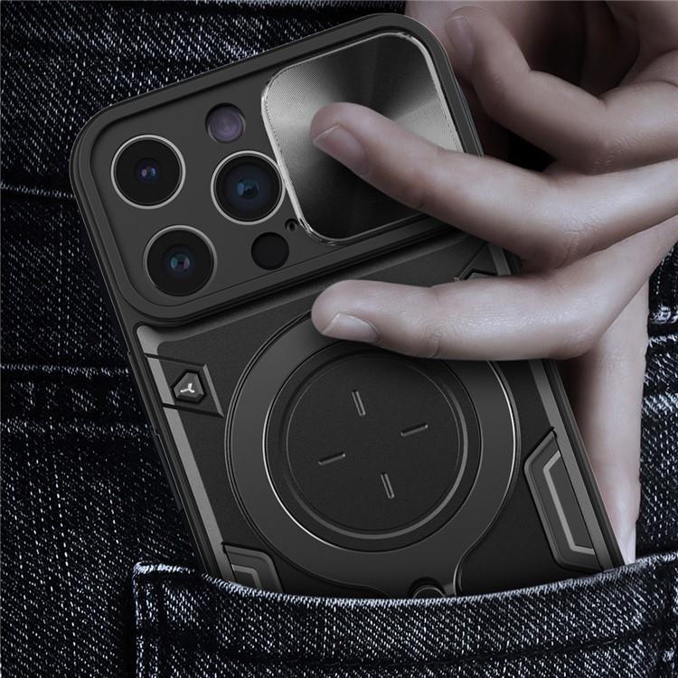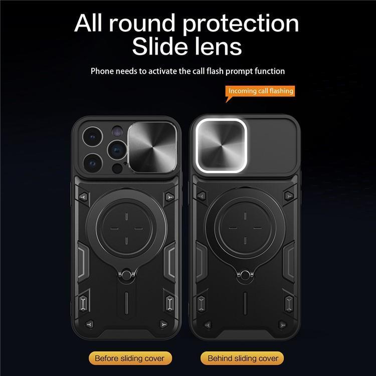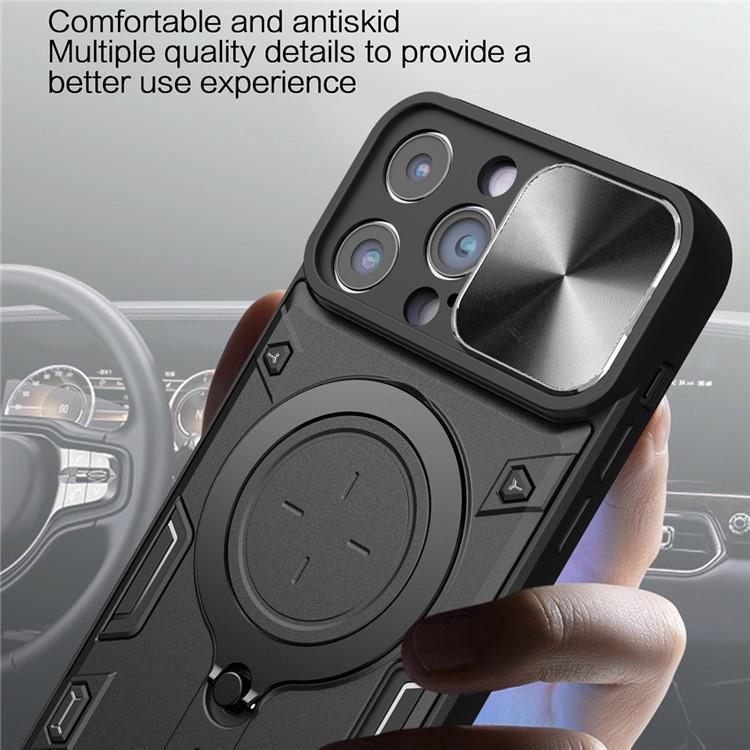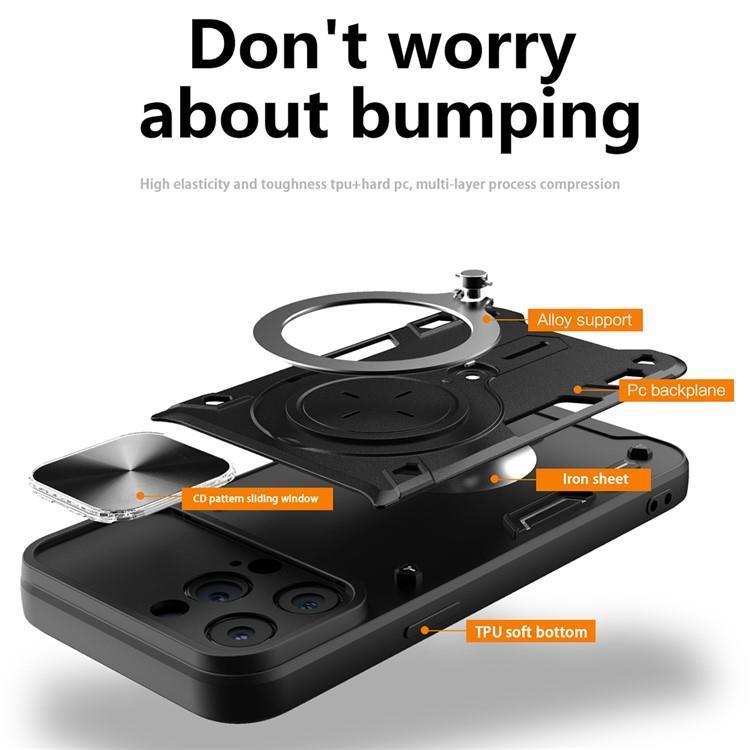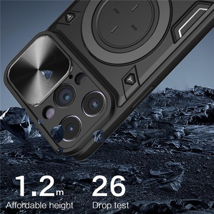 iPhone 12 Pro Max Mobilskal Magsafe Ringhållare Slide Kamera Lid PC+TPU Anti-drop Kickstand - Svart