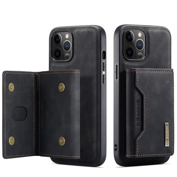 DG.MING M2-serien PU-läder magnetiskt trippel-plånboksfodral med kickstand för iPhone 12 Pro Max