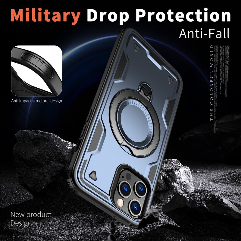 IPhone 12 Pro Skal Plast Militärskydd Kickstand - Blå
