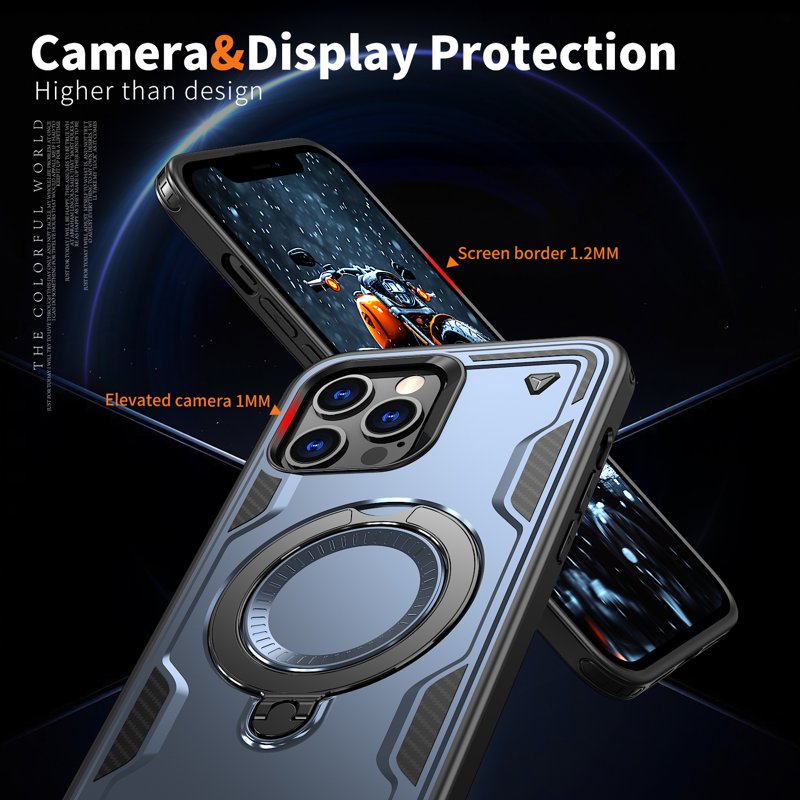 Vårt fodral erbjuder militärklassat skydd för din enhet. Tillverkat av hållbara PC- och TPU-material, ger det stöt- och fallskydd. Med en inbyggd kickstand kan du enkelt njuta av handsfree-visning. Dessutom är fodralet kompatibelt med MagSafe-laddare för snabb och säker laddning.