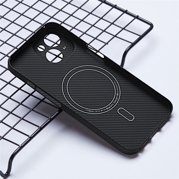 iPhone 13 Mobilskal Magsafe Aramid Fiber 600D Fine Texture (Exakt linshål) - Svart