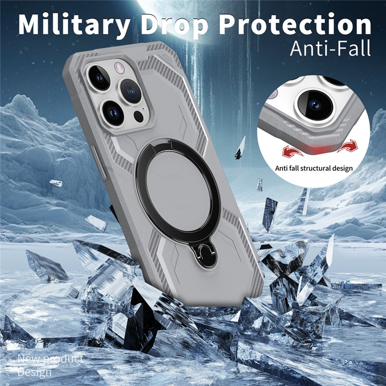 Det starka inbyggda magnetiska ringen (1500 g magnetkraft) ger säker och snabb anslutning till MagSafe-kompatibla laddare. Detta gör trådlös laddning stabilare och mer effektiv, även när du rör dig runt hemma eller på jobbet. -