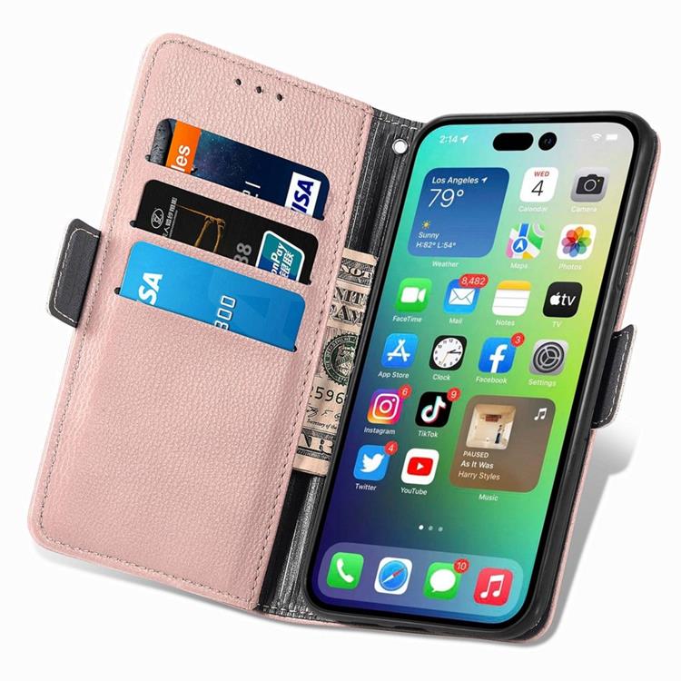 iPhone 14 Plus Plånboksfodral Läder Flower Decor Magnetic Clasp Stand PU - Rosa Guld