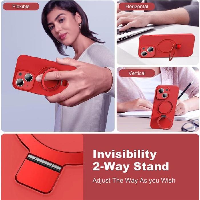 iPhone 14 Mobilskal Magsafe Liquid Silikon Shockproof Magnetic Kickstand - Röd