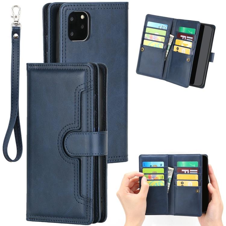 iPhone 14 Pro Max Plånboksfodral Äkta Läder Flip med Handrem - Blå