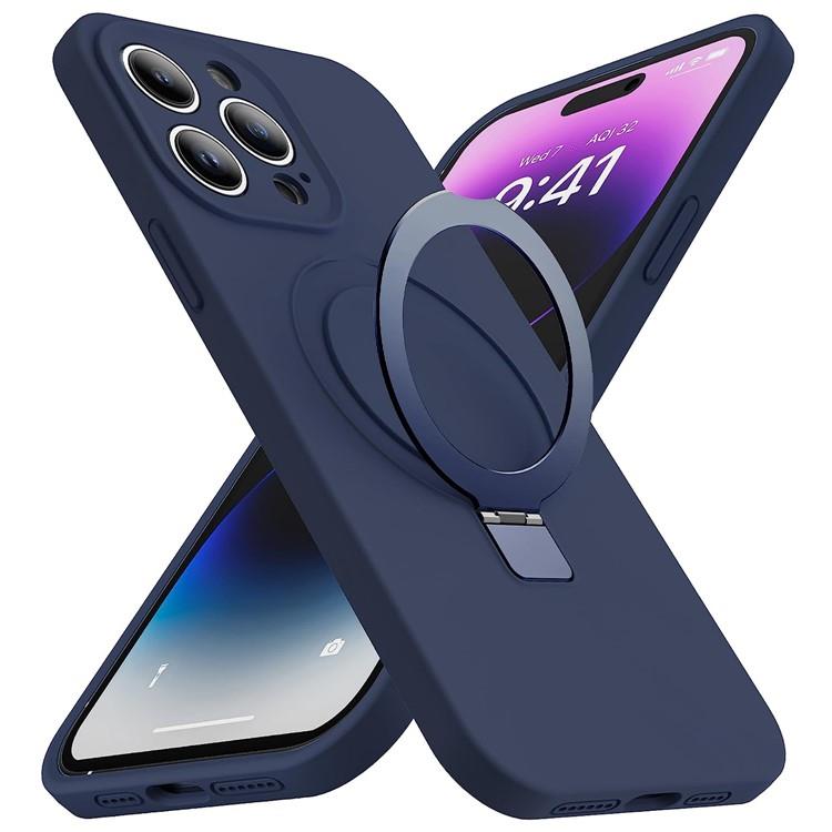 iPhone 14 Pro Mobilskal Magsafe Liquid Silikon Shockproof Magnetic Kickstand - Marinblå