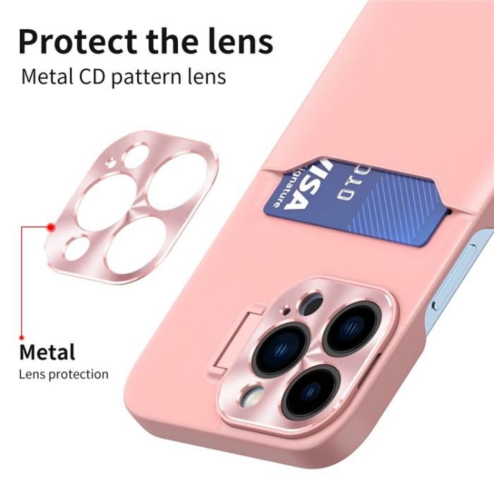 iPhone 14 Pro Skal Korthållare Linsram Kickstand - Rosa