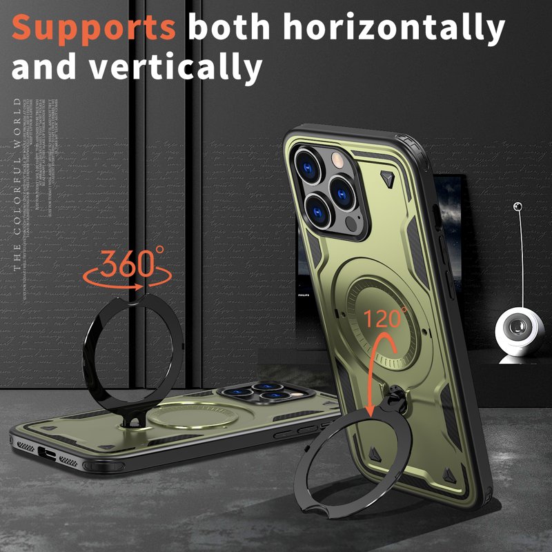 Detta fodral erbjuder militärklassad skydd för din smartphone. Tillverkat av hållbara PC- och TPU-material, ger det stöt- och fallskydd. Med en inbyggd kickstand kan du enkelt njuta av handsfree-visning. Fodralet är också kompatibelt med MagSafe-laddare för snabb och säker laddning. Skydda din enhet i tuffa förhållanden med stil och funktionalitet.
