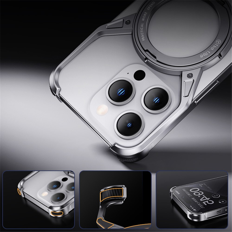iPhone 15/14/13 Mobilskal Bumper Frameless Kickstand Aluminum Alloy - Grå