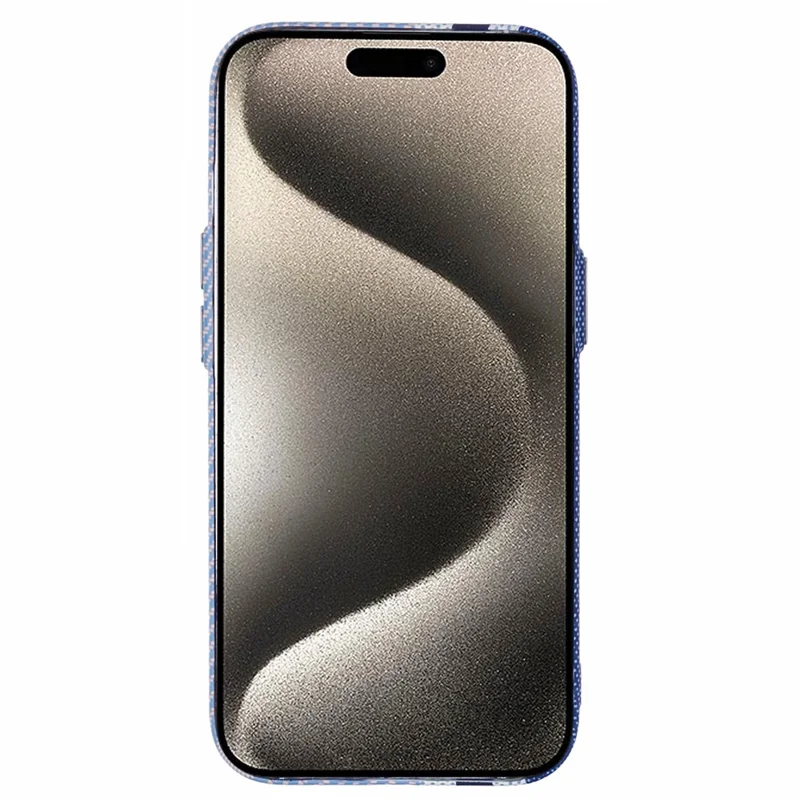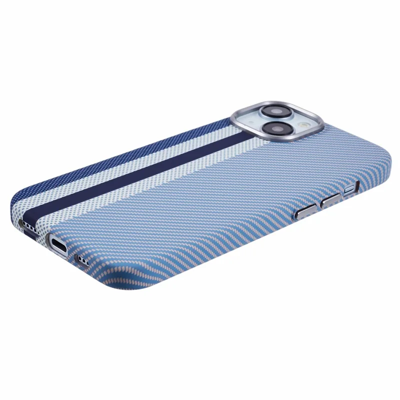 iPhone 15 Mobilskal Magsafe Aramid Fiber - Blå Vertical Stripes