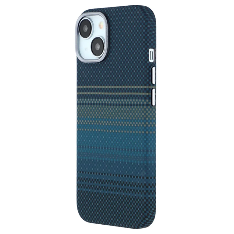 iPhone 15 Mobilskal Magsafe Aramid Fiber - Blå Vertical Stripes