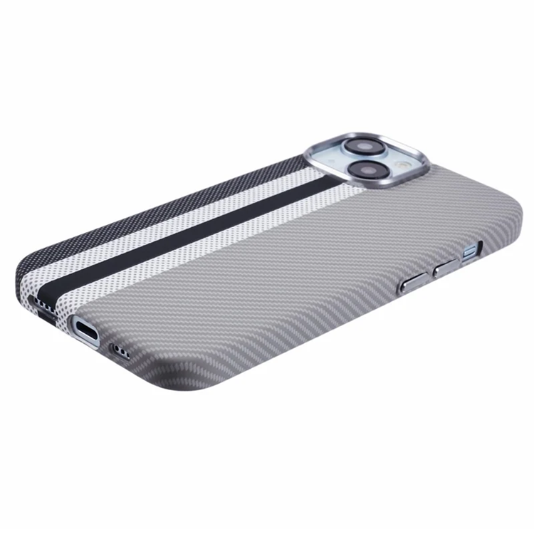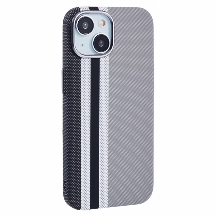 iPhone 15 Mobilskal Magsafe Aramid Fiber - Grå Vertical Stripes