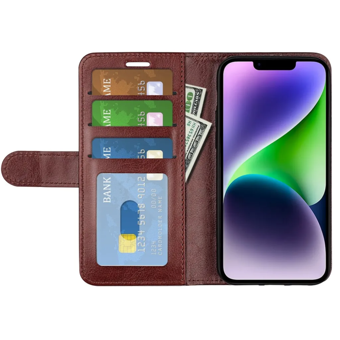IPhone 15 Plus Plånboksfodral Premium - Brun
