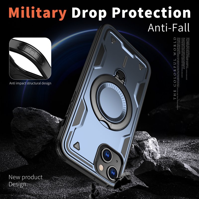 IPhone 15 Plus Skal Plast Militärskydd Med Ställ - Blå