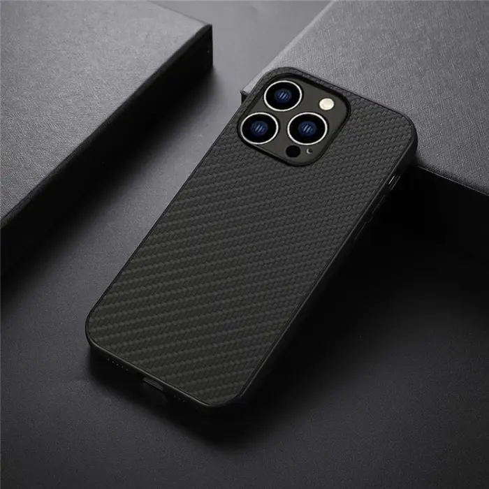 iPhone 15 Pro Max Mobilskal Carbon Fiber Texture Anti-scratch Läder Coated TPU - Svart