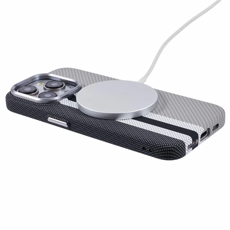 iPhone 15 Pro Max Mobilskal Magsafe Kevlar Aramid Fiber - Grå Vertical Stripes