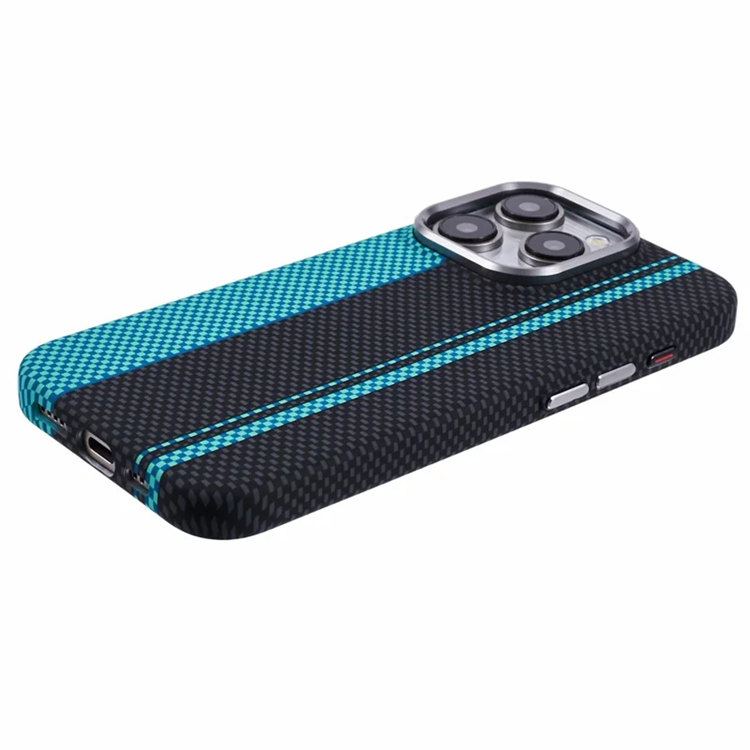 iPhone 15 Pro Mobilskal Magsafe Kevlar Aramid Fiber - Blå/Svart Stripes