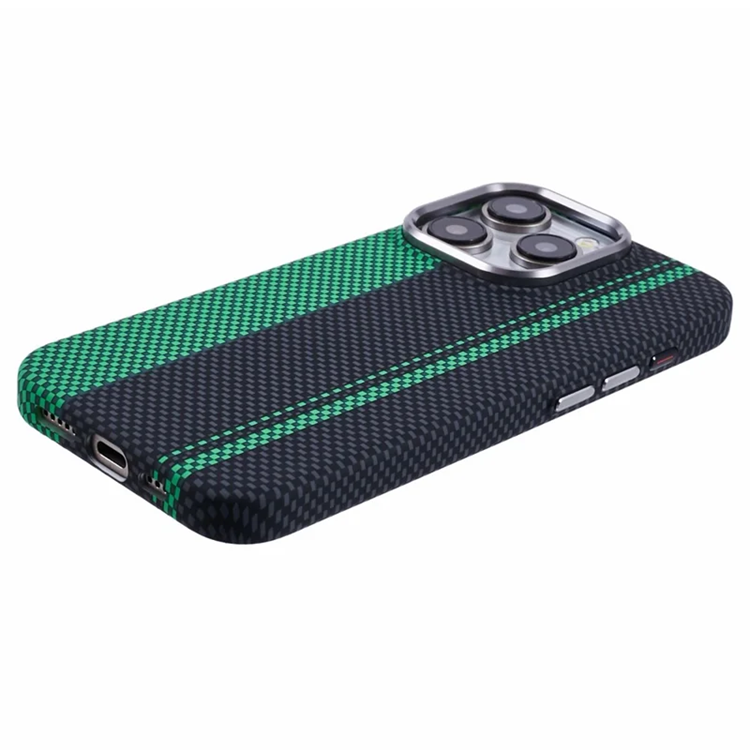 iPhone 15 Pro Mobilskal Magsafe Kevlar Aramid Fiber - Grön/Svart Stripes