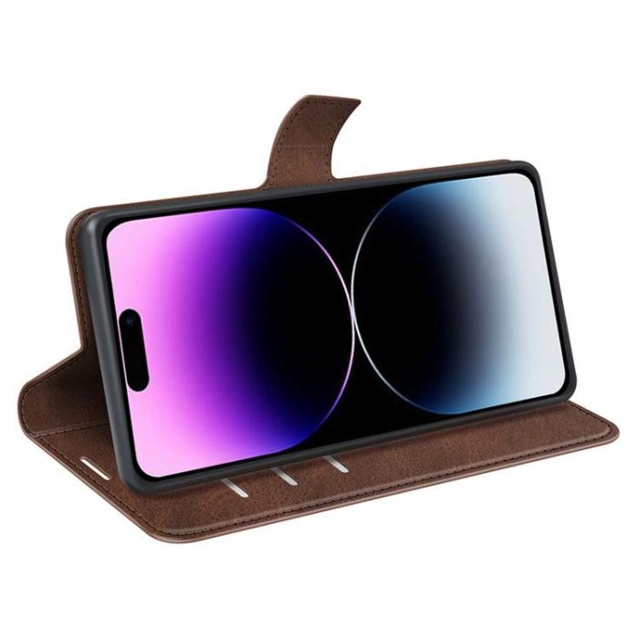 iPhone 15 Pro Plånboksfodral Calf Texture Flip Folio Läder Square Magnetic Closure Stand - Brun