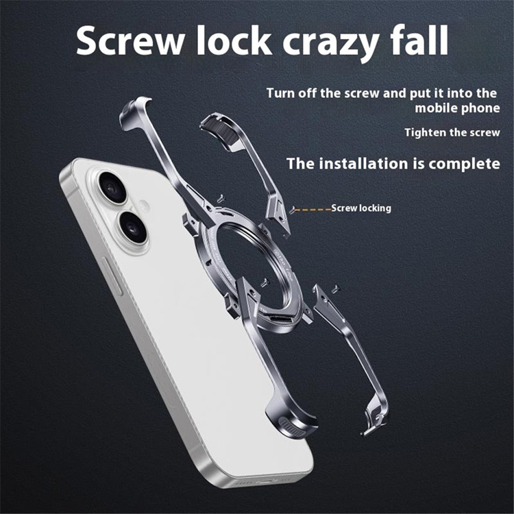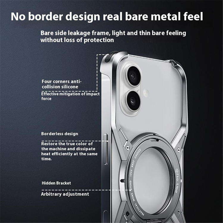 iPhone 16 Mobilskal Bumper Frameless Kickstand Aluminum Alloy - Grå