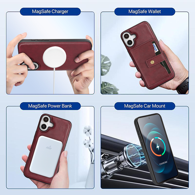 IPhone 16 Mobilskal MagSafe Detachable Korthållare (Röd)