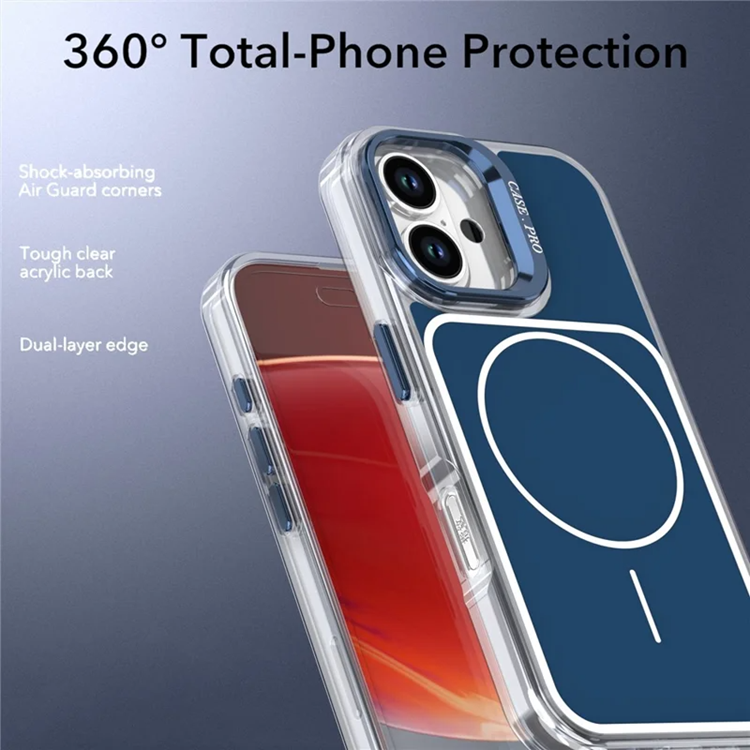 iPhone 16 Mobilskal MagSafe Kickstand med Matchande Handrem TPU-akryl - Blå
