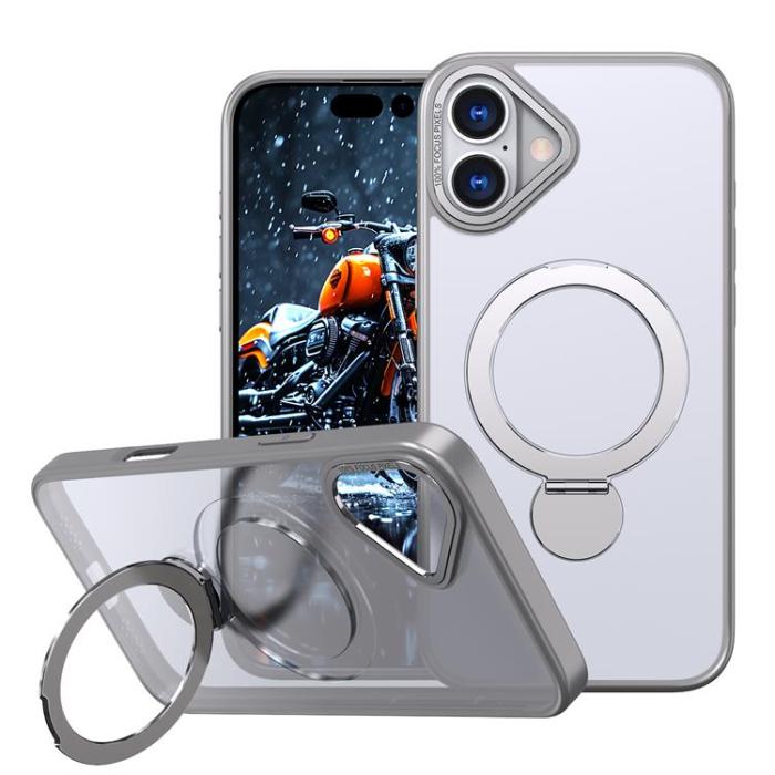 iPhone 16 Mobilskal MagSafe Rotating Kickstand Skin-touch TPU + PC - Titangrå
