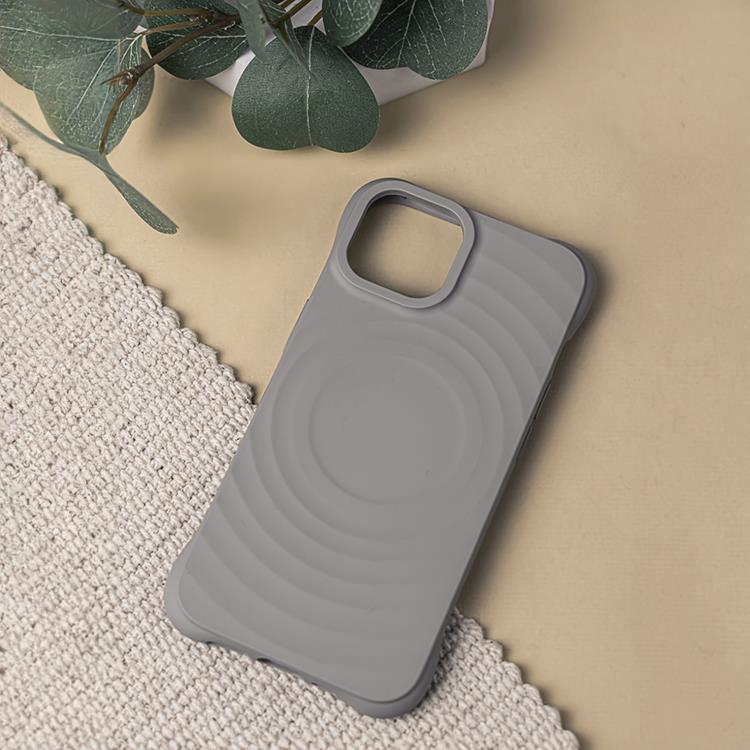 Med en magnetstyrka på 2100 Gs och kompatibilitet med MagSafe-teknologi fungerar Circle Mag Case smidigt med olika magnetiska tillbehör, vilket säkerställer en säker fastsättning och användarvänlighet. Det unika mönstret av spridande vågor på skalets yta ger ett distinkt utseende, medan den halksäkra texturen ger ett säkert grepp i handen. Insidan av skalet är fodrad med mikrofiber som skyddar mobilen från repor och smuts.
