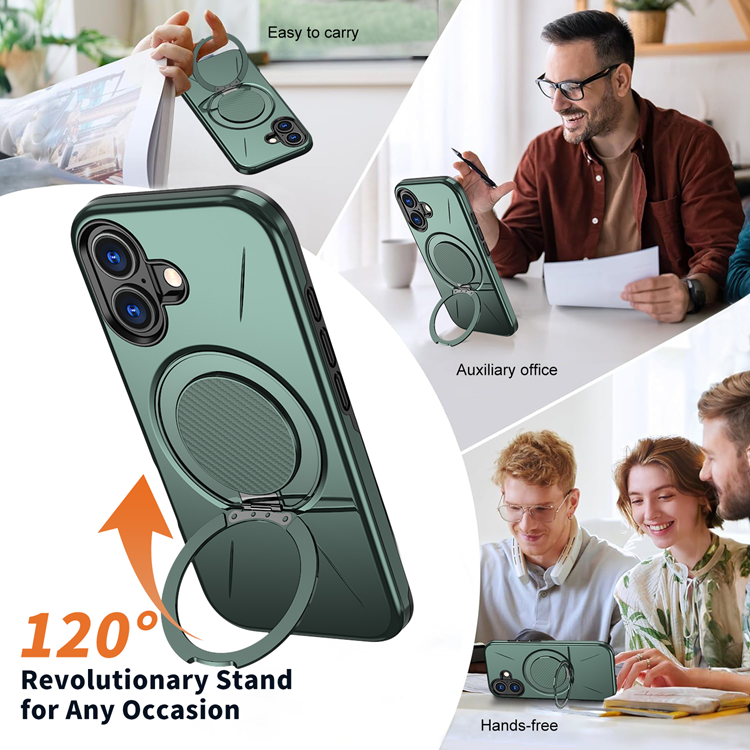iPhone 16 Plus Mobilskal MagSafe Rotating Kickstand TPU + PC - Grön