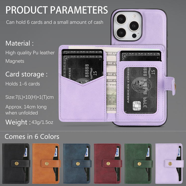 iPhone 16 Pro Max Mobilskal MagSafe Kickstand Detachable Korthållare PU Läder Coated TPU - Lila
