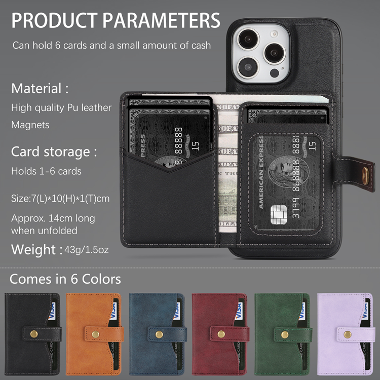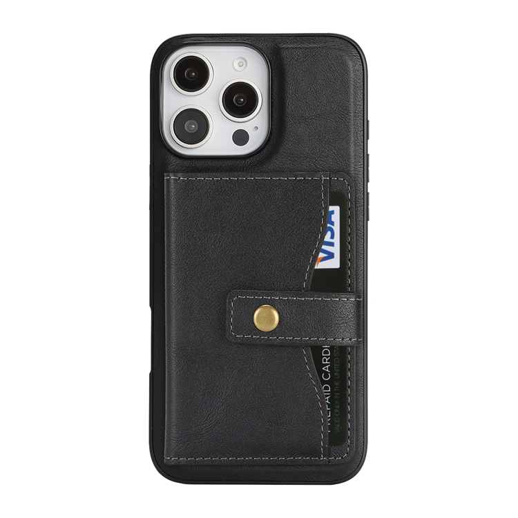 iPhone 16 Pro Max Mobilskal MagSafe Kickstand Detachable Korthållare PU Läder Coated TPU - Svart