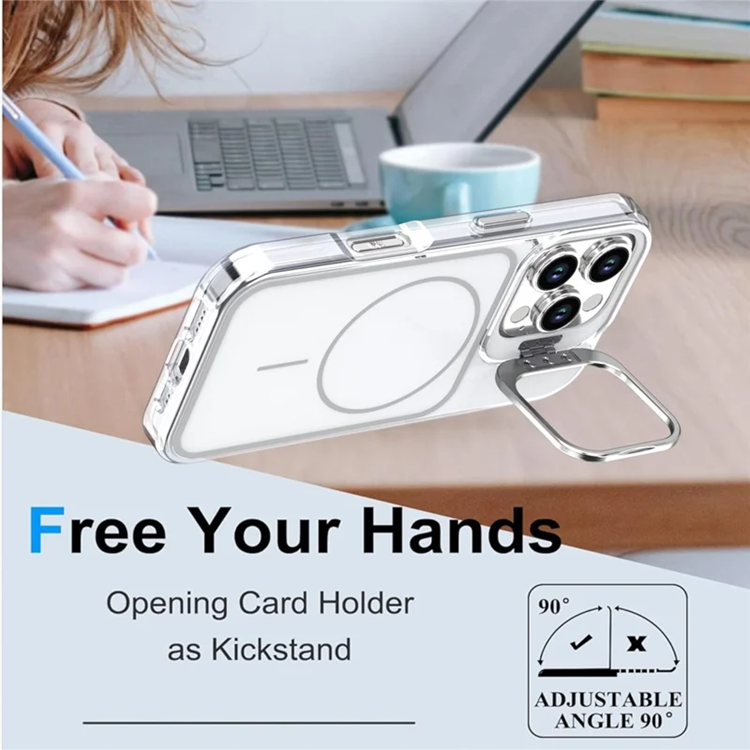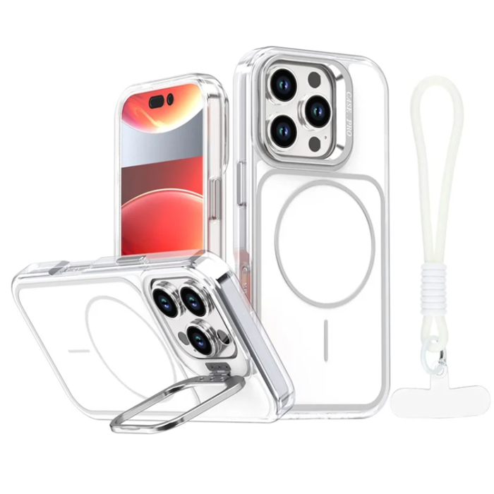 iPhone 16 Pro Max Mobilskal MagSafe Kickstand med Matchande Handrem TPU-akryl - Vit