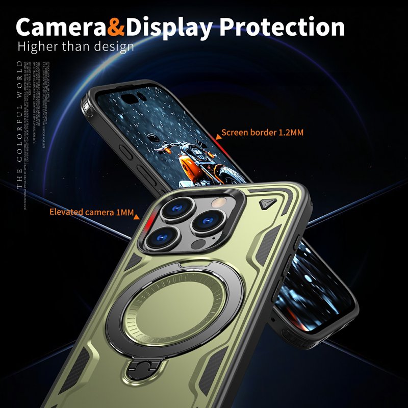 - Höga kanter för skärm- och linskydd: Förhindrar repor och skador från direkt kontakt med ytor.