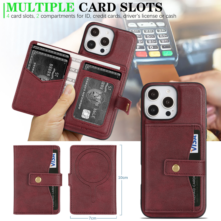 iPhone 16 Pro Mobilskal MagSafe Kickstand Detachable Korthållare PU Läder Coated TPU - Röd