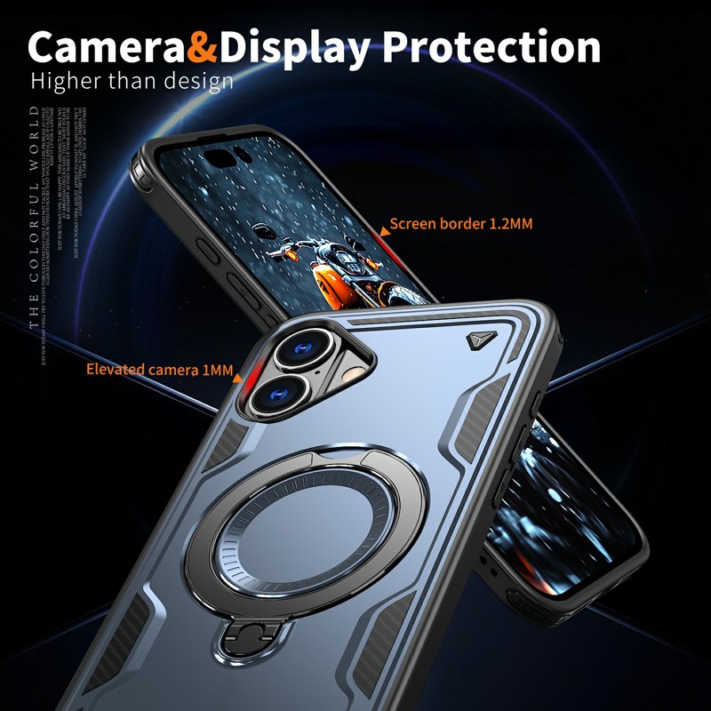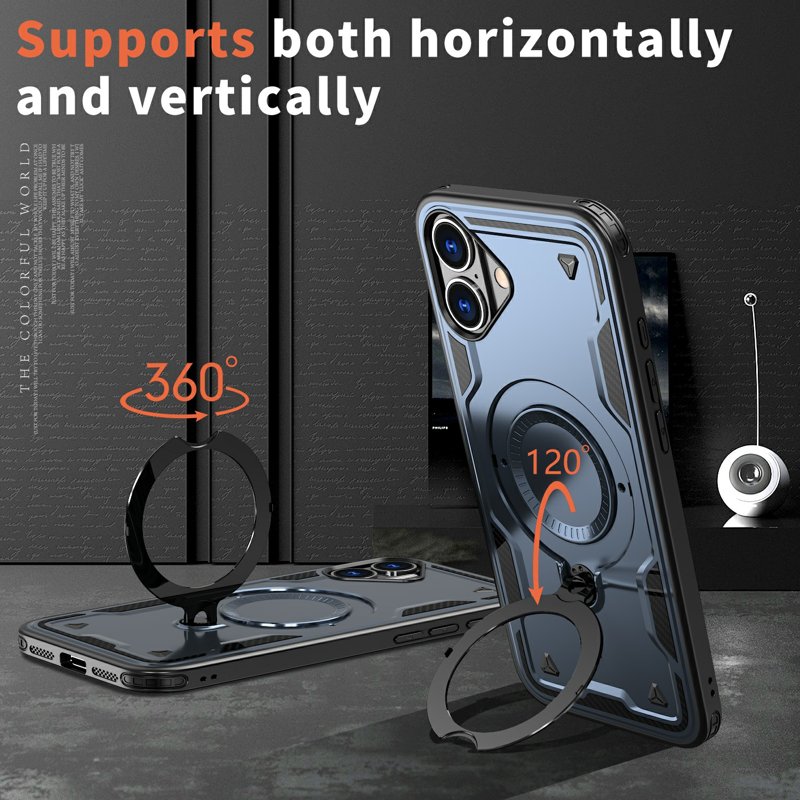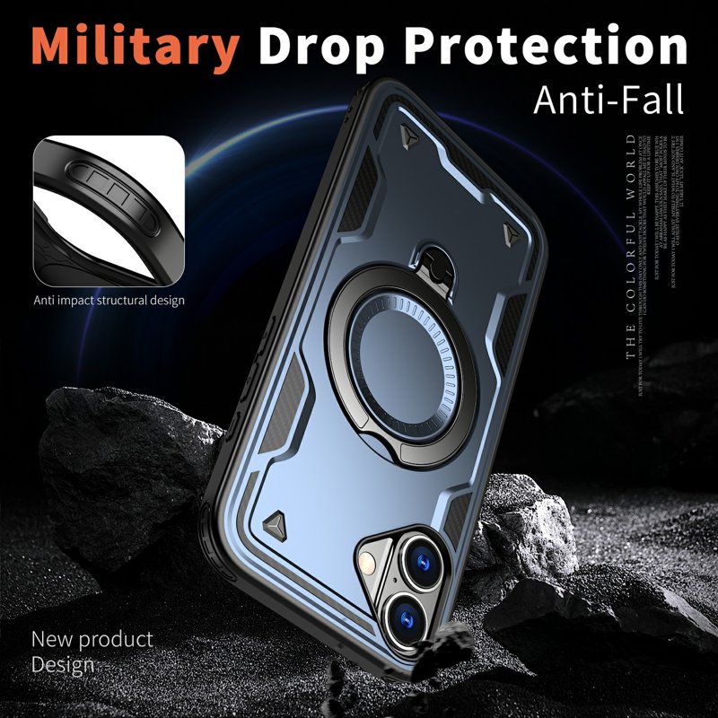 Vårt fodral erbjuder militärklassad skydd för din enhet. Tillverkat av hållbara PC- och TPU-material, ger det stöt- och fallskydd. Med en inbyggd kickstand kan du enkelt njuta av handsfree-visning. Dessutom är det kompatibelt med MagSafe-laddare för snabb och säker laddning. Skydda din telefon utan att kompromissa med funktionaliteten.