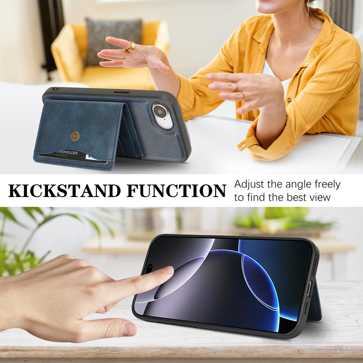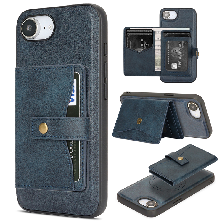 iPhone 16e Mobilskal MagSafe Kickstand Detachable Korthållare PU Läder Coated TPU - Blå