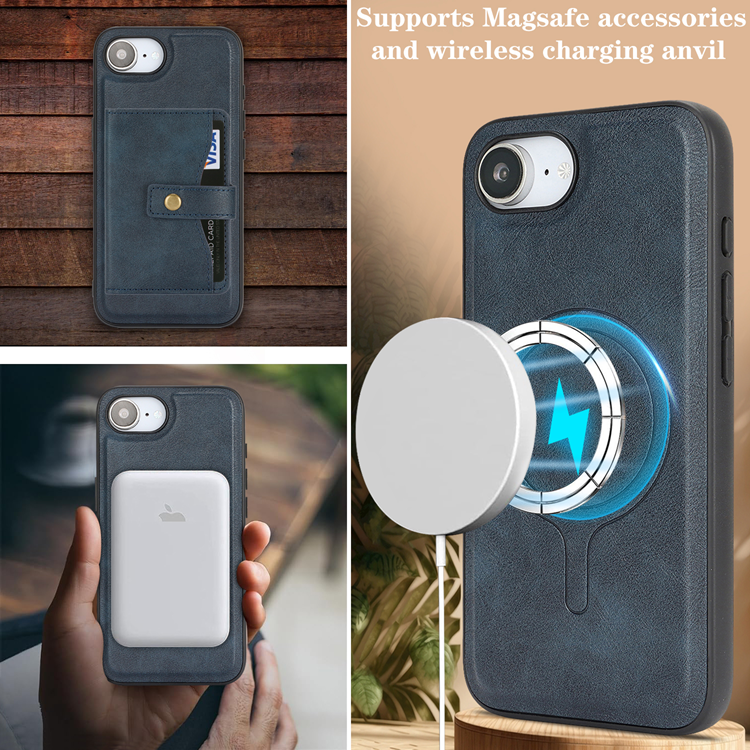 IPhone 16e Mobilskal MagSafe Detachable Korthållare (Blå)