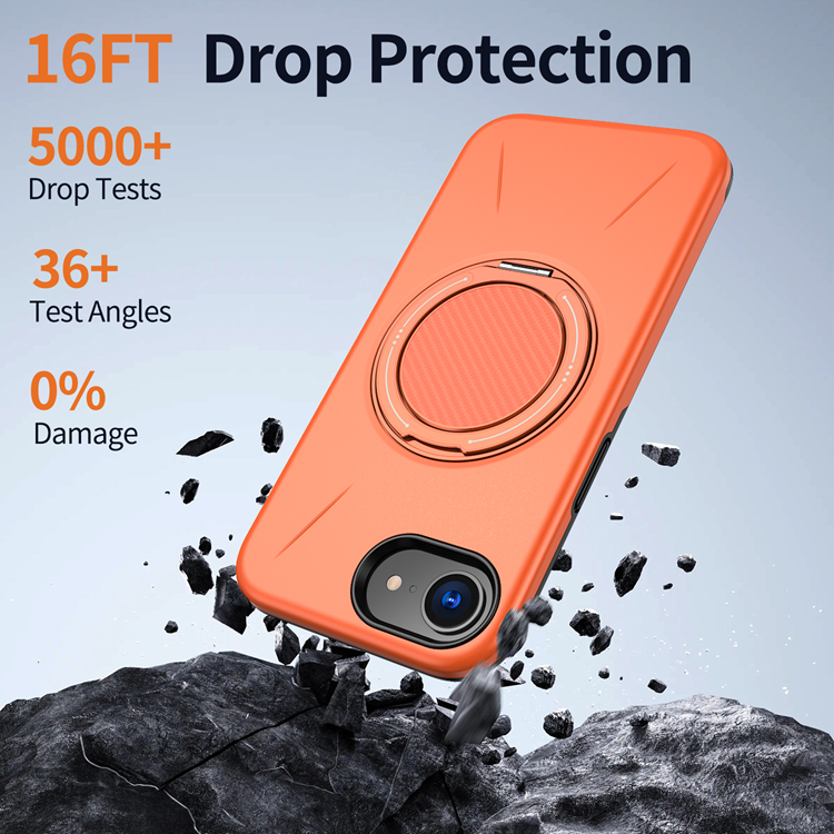 iPhone 16e Mobilskal MagSafe Rotating Kickstand TPU + PC - Orange
