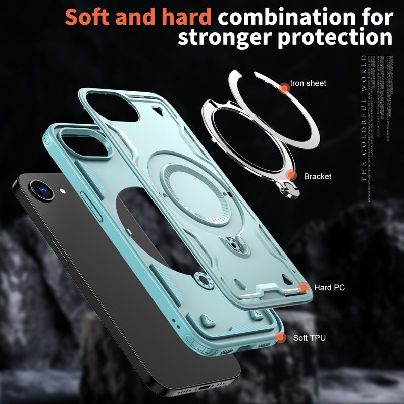 Detta fodral erbjuder militärklassad skydd för din enhet. Tillverkat av hållbara PC- och TPU-material, ger det stöt- och fallskydd. Med en inbyggd kickstand kan du enkelt njuta av handsfree-visning. Fodralet är också kompatibelt med MagSafe-laddare för snabb och säker laddning.