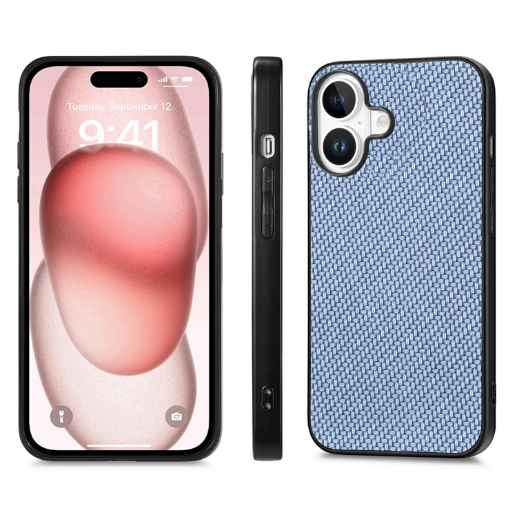 iPhone 17 Mobilskal Carbon Fiber Texture PU Läder - Blå