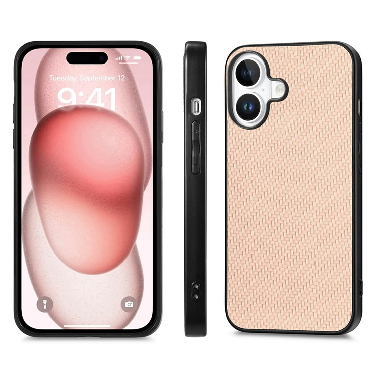iPhone 17 Mobilskal Carbon Fiber Texture PU Läder - Khaki