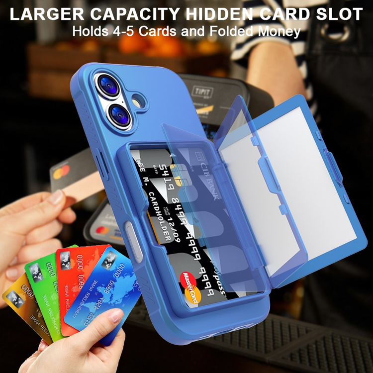 iPhone 17 Mobilskal Korthållare Mirror TPU + PC Kickstand - Marinblå