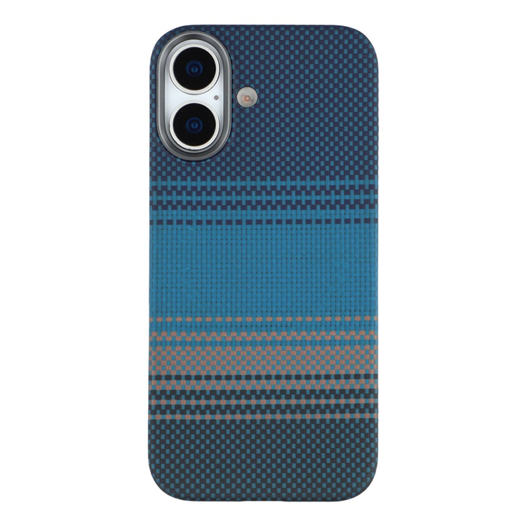 iPhone 17 Mobilskal MagSafe Aramid Fiber Gradient med Metall Lins Ram - Blå Fytande Väv