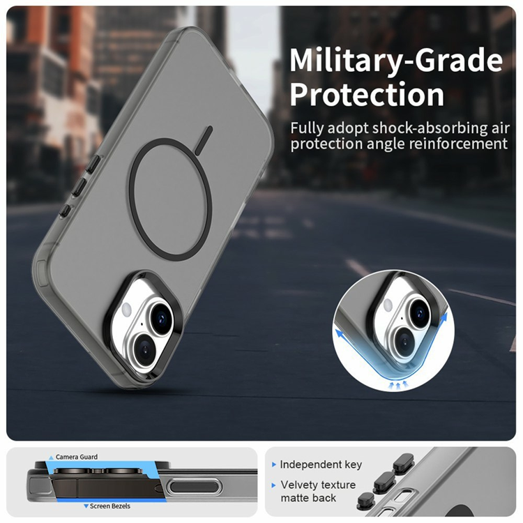 Med inbyggd MagSafe-kompatibilitet blir laddningen enkel och snabb. Den starka magnetringen ger stabil fästeffekt och fungerar sömlöst med både MagSafe-laddare och tillbehör. Upphöjda kanter runt kamera och skärm ger dessutom extra skydd mot repor och fall, medan exakta utskärningar garanterar att alla funktioner är lättillgängliga. Ett perfekt val för dig som vill ha både trygghet och stil i ett.