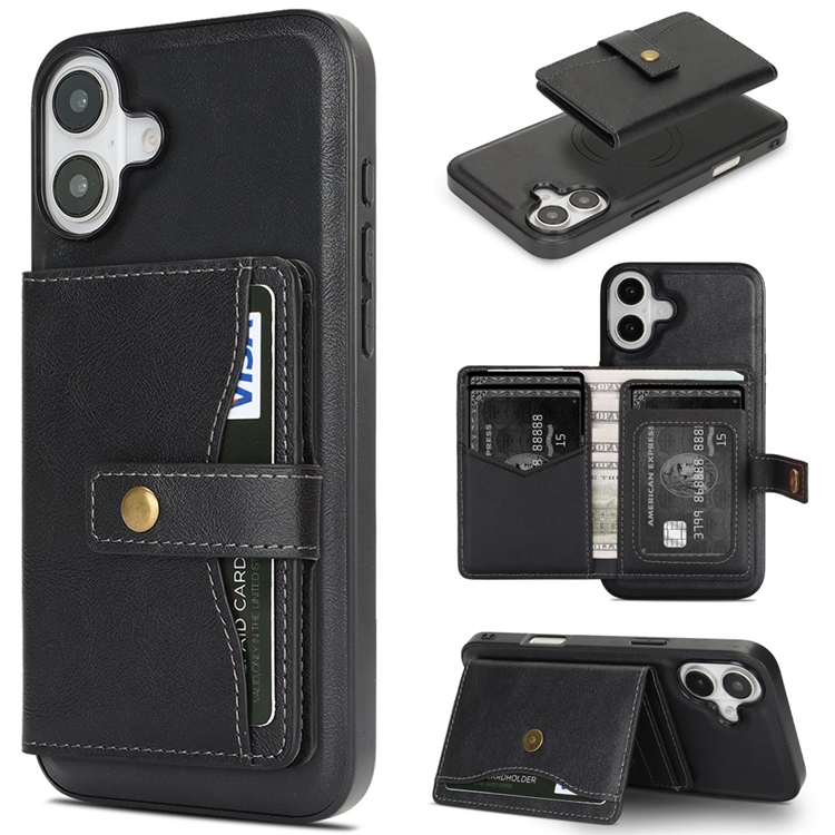 iPhone 17 Mobilskal MagSafe Kickstand Detachable Korthållare PU Läder Coated TPU - Svart