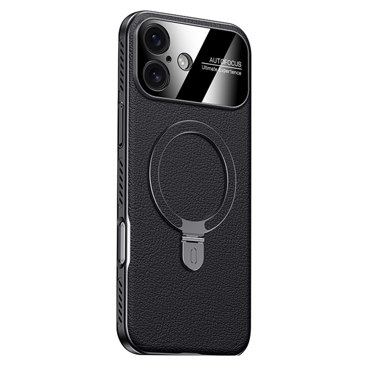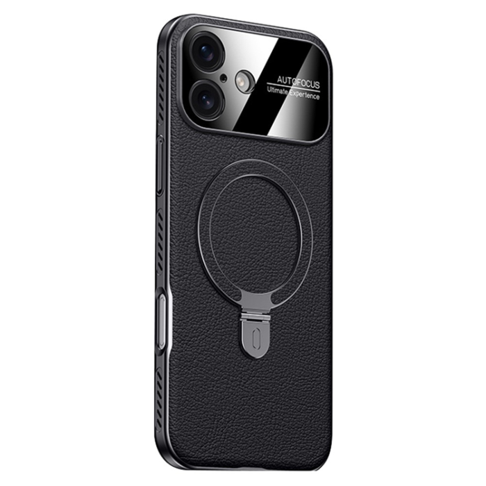 iPhone 17 Mobilskal MagSafe Kickstand Electroplated Cooling PC PU Läder Cooling - Svart